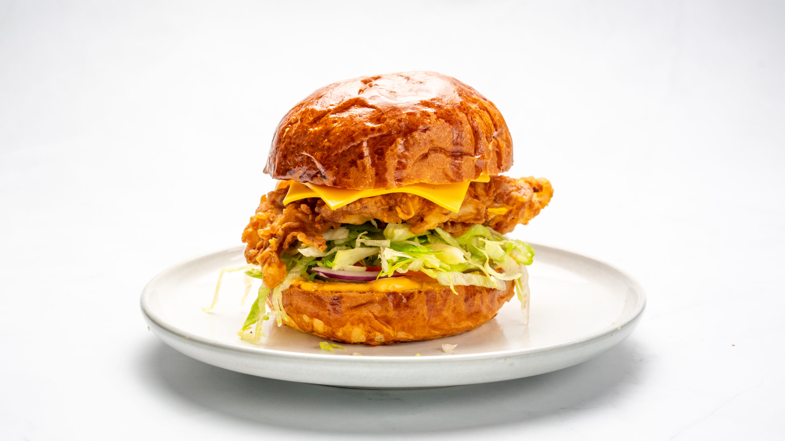 Burger sauce, Chicken cutlet, Pickle, Onion, tomato, Lettuce, 2*Cheddar cheese